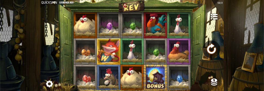 Luskende Rev, også kjent som Feasting Fox, er et casinohjulspill med 5 hjul og 20 gevinstlinjer. Spilleautomaten er laget av produsenten Quickspin. Spillet har STABLEDE SYMBOLER, NUDGE, RESPINN, FOOOXX!!-funksjonen og CHICKEN DINNER GRATISSPINN.