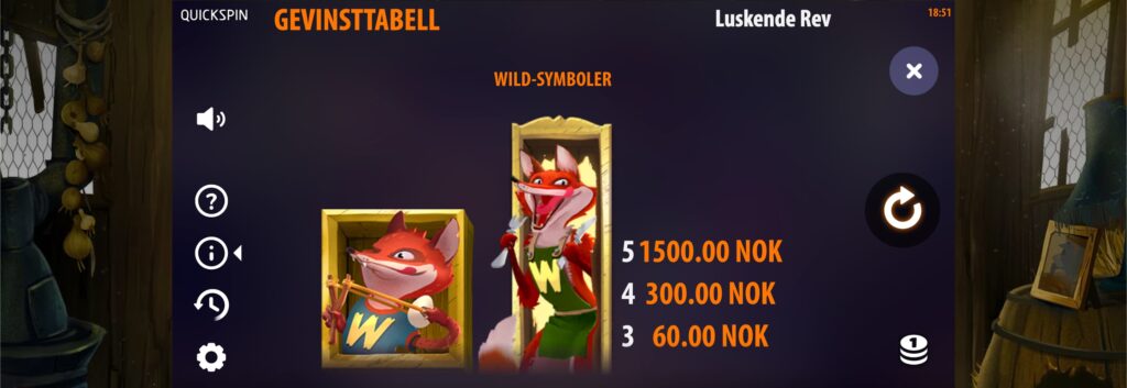 Alle gevinstkombinasjoner i spillet kan sees i utbetalingstabellen, som du finner ved å trykke på «i»-knappen på tastaturet.