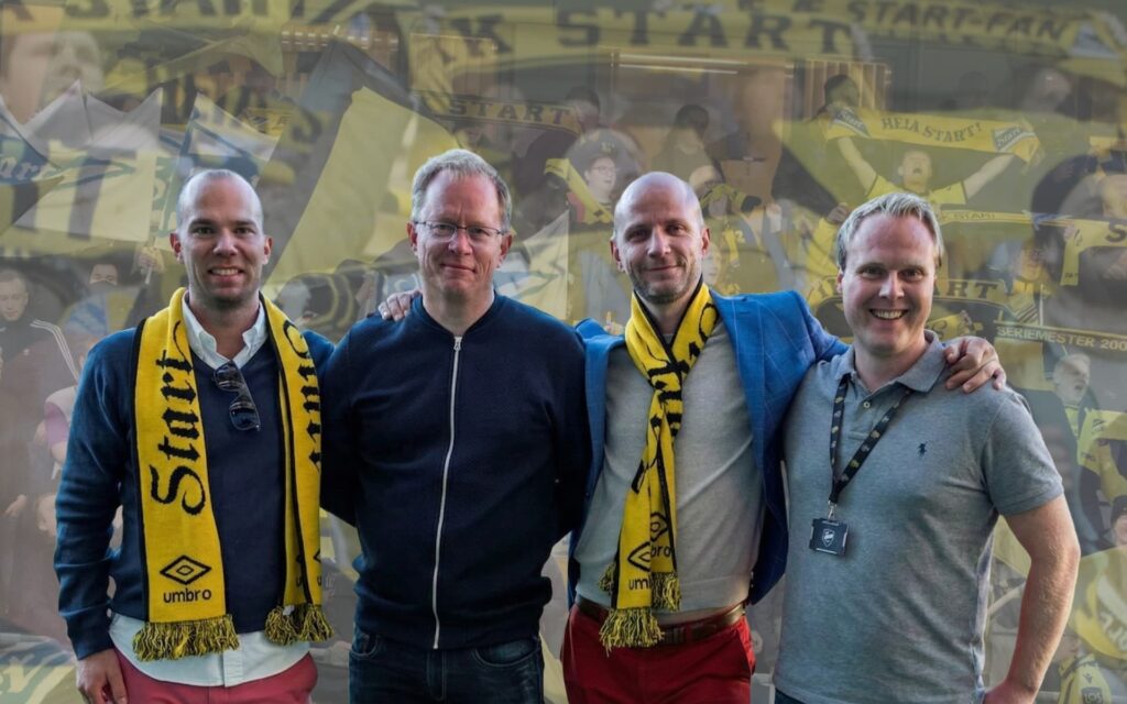 Bilde: F.v. Mads Nesset, Frode Fagerli, Robin Eirik Reed, Christopher Langeland, alle sammen medeiere i fotballklubben IK Start gjennom Start En Drøm AS. Alle medlemmer av den myteomspunnede «GIG-mafiaen».